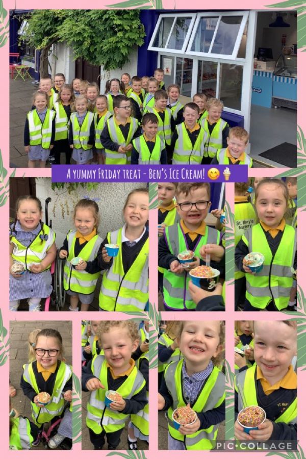 On Friday 24th June to celebrate the children working so hard for Graduation, we went on a walk for a very special treat - ice cream! We visited Ben’s Ice Cream Studio in Portglenone and it was delicious! The children all got to choose what flavour of ice cream they wanted and whether or not they wanted sprinkles. Lots of the children enjoyed telling each other about their previous trips to Bens and what ice cream they like. There were lots of happy faces and the children came to the conclusion that we should have ice cream for snack every day!