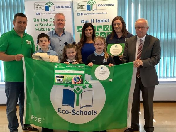 Mrs Milner, accompanied by Siobhan McGrogan and three of our Eco Committee members, attended a very special event at Ballymena Showgrounds today to receive our Green Flag award. We are very proud of the work that we do in school to achieve this award, one that we have held now for over 10 years.