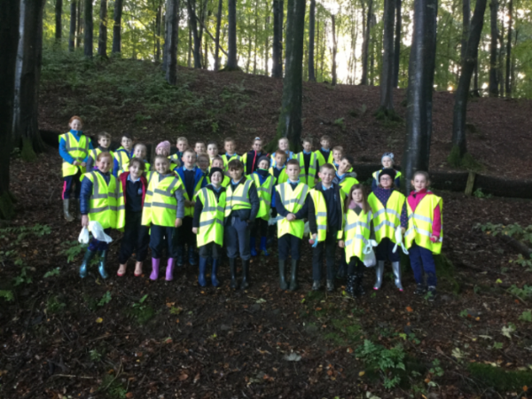 On Wednesday 16th October Primary 5 went to Portglenone forest on a trip. We all came into school with old bottoms on and wellies. As we walked there we all had to go through an old road and there were puddles and it was so muddy. When we finally got there we met our tour guide Liz O`Connor. First we ate our snack that we brought with us, I had a packet of high fives. Liz said we had to take our rubbish home. Then we had a walk and then we stopped and huddled around Liz. She told us about the beech tree and the sycamore. The sycamore has pointed leaves and helicopter seeds. And the beech tree has round leaves and spikey nuts. After, Liz told us to find both leaves and nuts. Then we walked more and stopped to talk about Augustine Henry and Charles Darwin. Our next stop was a great big yard and Liz said that we could go on a bug hunt. Me and my friend Orla got a tub and a spoon and we found lots of insects. Then Annie and Aimee came to help. Then we all gathered to see the insects everyone collected. After we learnt all about photosynthesis and did a dance. Then Liz taught us about the roots of the tree. After Liz took us on a trail that badgers walk at night. And after the bug hunt we made an extraordinary centipede. As we walked we found a WW2 base! When we were at the gate we said thank you to Liz. As we headed home, it was still super muddy. It was that muddy Mrs Stevenson said we had to take our shoes off. I had a great day!