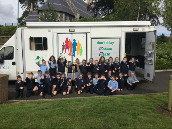 The recycling bus came to our school today and all the classes got to visit it. Noel, the driver and guide for the bus explained to us about recycling and how important it is.
