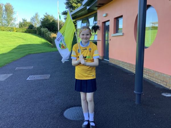 The 27th of September brought the Antrim Camogie Champions to our school. Katie Carey, Roisin Kelly, Eimear Vallely and Catriona Graham came to answer some of our questions and sign some of our jerseys and hurling sticks. The P6 and P7 pupils greeted the visitors at the entrance and an assembly was held. The pupils also designed some posters and the girls judged them so there was one winner in every class. The winners were: Danny McKenna, Grace McCann, Cormac McGill, Sofia Erwin, Ava Scullion, Annie Convery and Aimee Graham. It was really amazing getting to meet the team and hear about their journey to success. Maybe someday in the future some of our pupils will be back with similar stories of success!