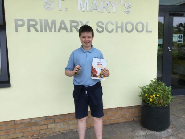 John McAtamney a primary 7 pupil was nominated to take part in the half time GAA game along with other children in the Antrim area against children from Down. John played defence and they won by 2 points. Here we see John with the programme with his name printed inside as a souvenir and he received a medal to remember his experience that day.