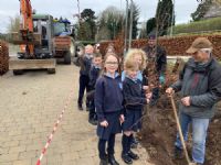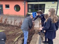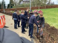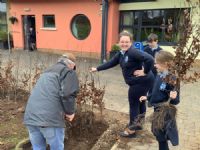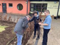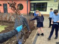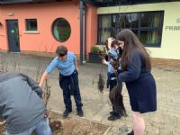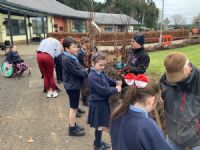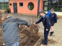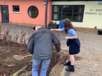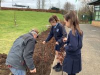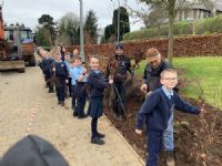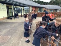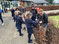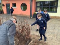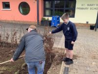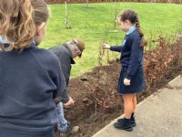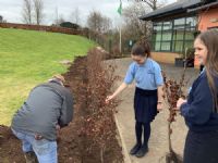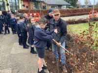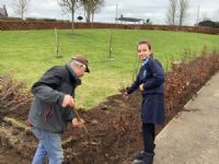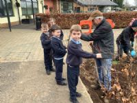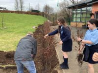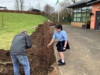 Mrs Milner applied for funding for new hedging at the front of our school. To our surprise we were granted it and were able to purchase more beech hedging and trees to add to the front of our school. Everyone in the school planted a little bit of hedging, starting with Primary 1 up to Primary 7. I think I can say we all enjoyed it.It already looks great and hopefully it will grow and mature over the next few years.