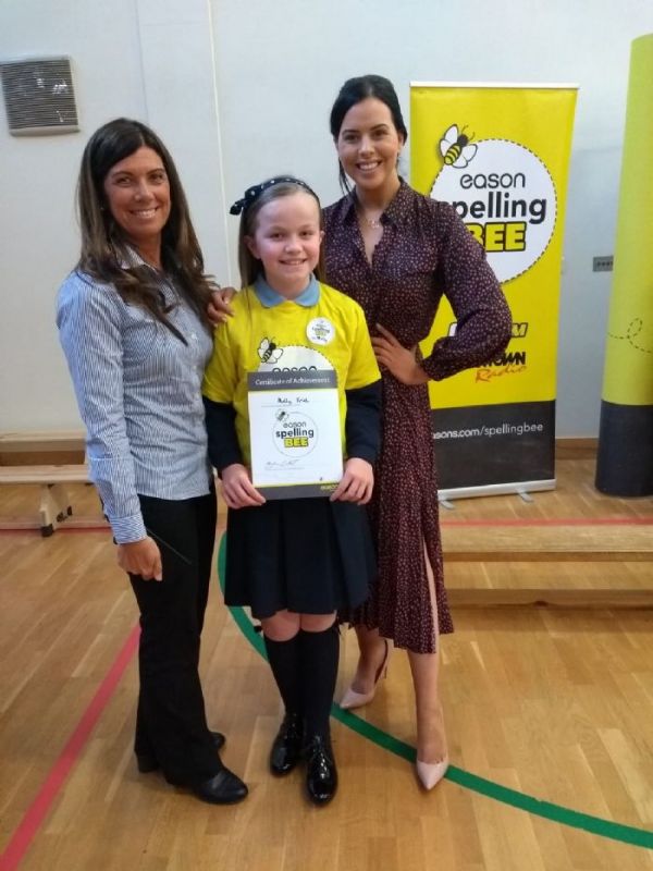 Congratulations to Molly Friel who represented our school at the Eason Spelling Bee Finals in Templepatrick P S. Molly did amazingly well but lost out to the Holy Cross P.S. champion. Molly was presented with a certificate by Rebecca McKinney from Cool FM.