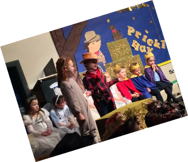‘Prickly Hay’ told the story of the Nativity through the eyes of a young stable girl called Sam. We had lots of different characters in our play. There were angels, kings, shepherds and animals as well as Mary, Joseph and Baby Jesus.