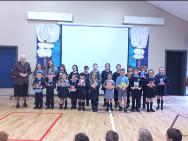All the children within St. Mary’s took part in the Senior Citizen Art competition which is held every year in the local community Centre. Annie the local organiser came in during assembly and presented the children with their prizes.